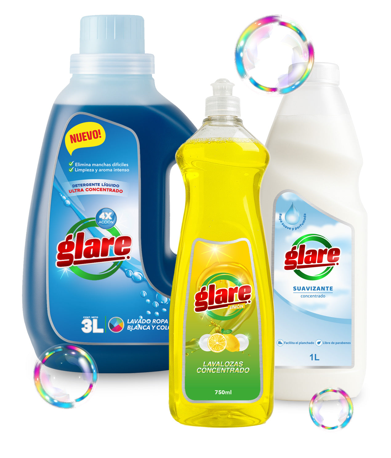 Con GLARE, obtienes resultados superiores con menos producto. Su fórmula concentrada garantiza más eficiencia y menos impacto en el ambiente. El nuevo estándar para hogares exigentes que buscan rendimiento sin comprometer la calidad.
